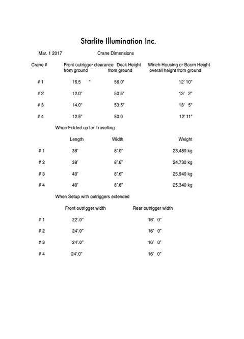 Crane Dimensions